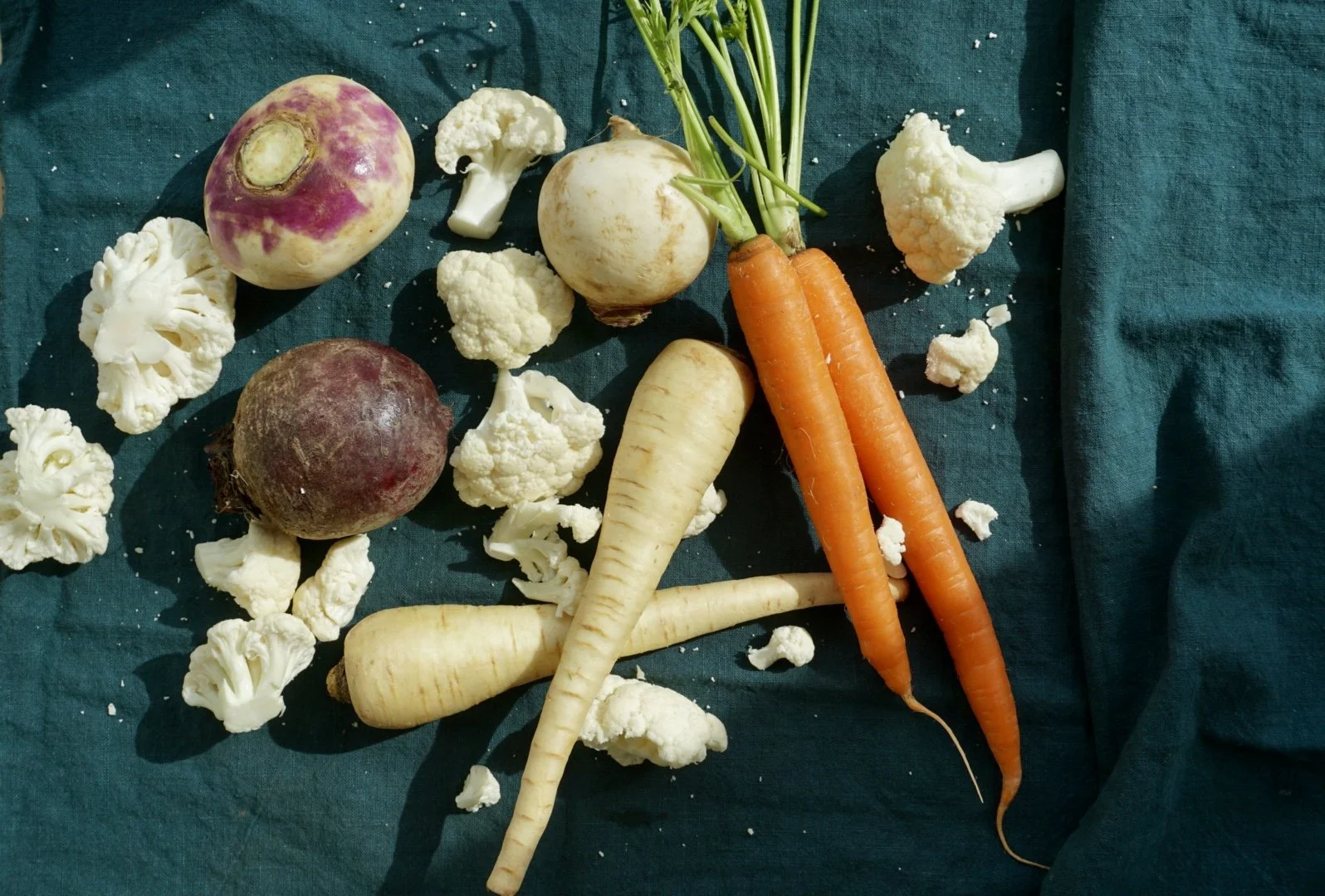 Drizzled on top of winter root vegetables and some cauliflower, this side dish is hearty enough for a small plant based meal and excellent served alongside roasted chicken or salmon.
