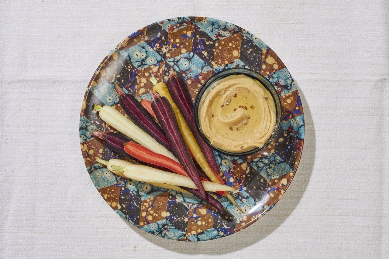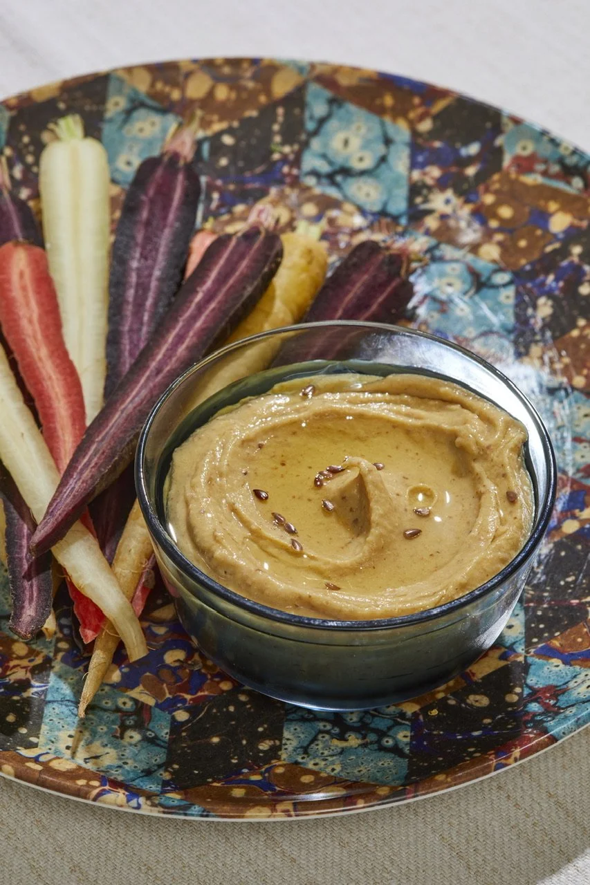 My favorite hummus was recently discontinued, so I figured I had to find a way to make it on my own. This subtly sweet hummus is delicious with crudités or crackers.